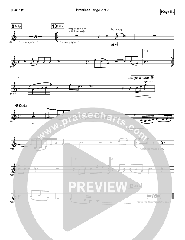 Download the Clarinet sheet music for Promises by Maverick City Music, from the album Maverick City Vol 3 Part 1. This song was arranged by Daniel Galbraith in the key of A, Bb.