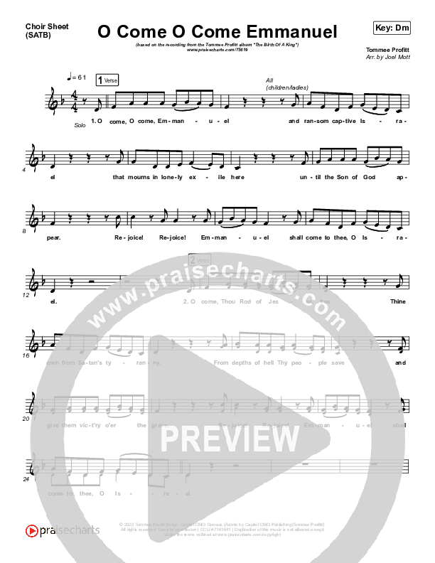 Download the Choir Sheet for O Come O Come Emmanuel by Tommee Profitt, from the album The Birth Of A King. This song was arranged by Joel Mott in the key of C#m, Dm.