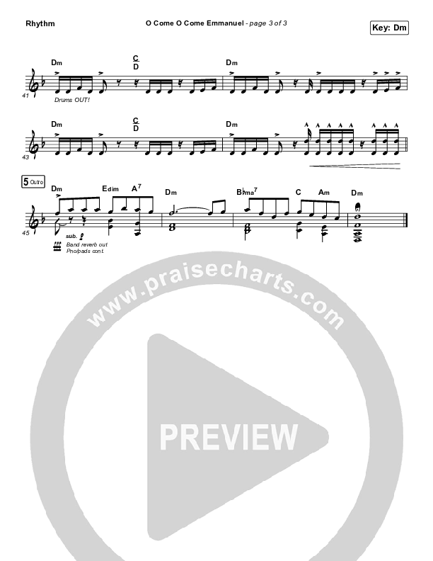 Download the Rhythm Chart for O Come O Come Emmanuel by Tommee Profitt, from the album The Birth Of A King. This song was arranged by Joel Mott in the key of C#m, Dm.