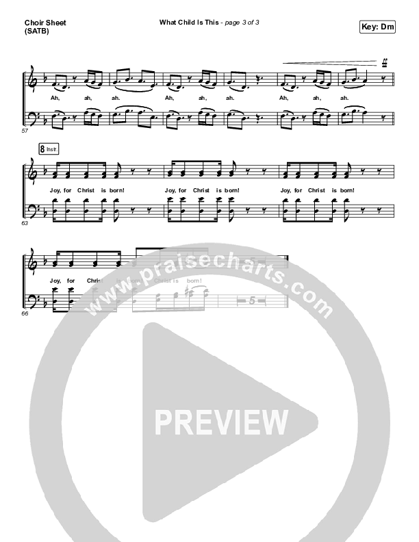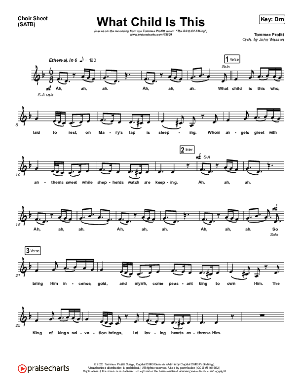 Download the Choir Sheet for What Child Is This by Tommee Profitt / Avril Lavigne, from the album The Birth Of A King. This song was arranged by John Wasson in the key of C#m, Dm.