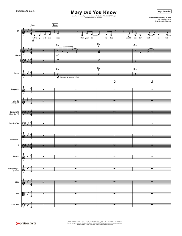 Download the Orchestration for Mary Did You Know by Tommee Profitt / Jordan Smith, from the album The Birth Of A King. This song was arranged by Erik Foster / John Wasson in the key of Am, F#m, Gm.