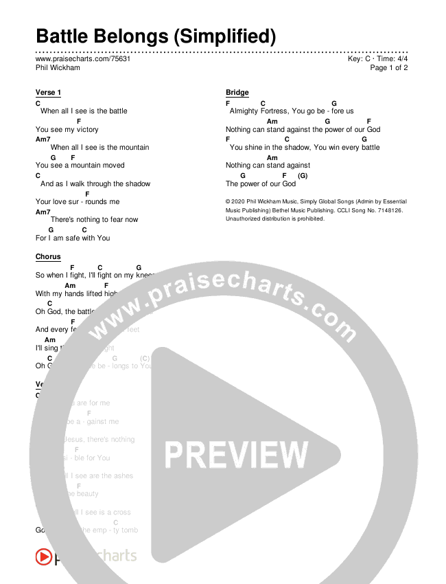 Download the PDF Chord Charts for Battle Belongs (Simplified) by Phil Wickham, from the album Simplified Worship.
