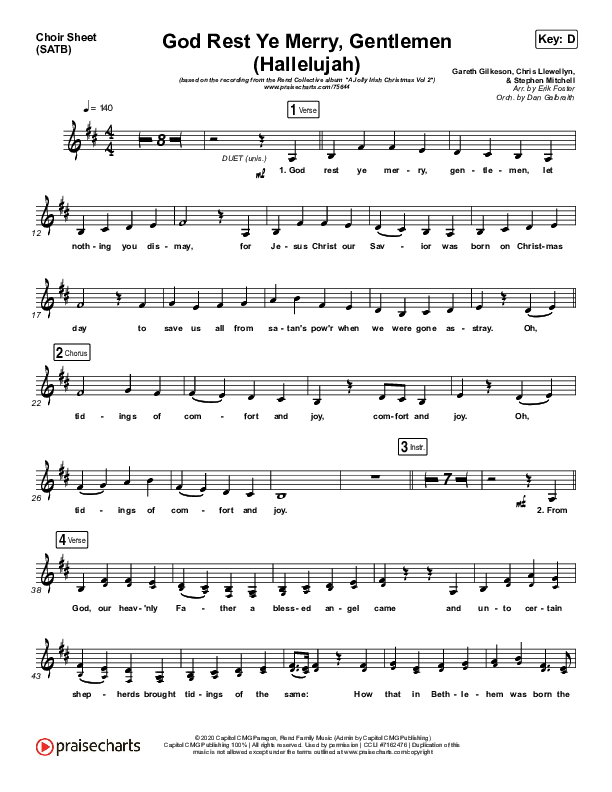 Download the Choir Sheet for God Rest Ye Merry Gentlemen (Hallelujah) by Rend Collective / We The Kingdom, from the album A Jolly Irish Christmas (Vol 2). This song was arranged by Erik Foster / Daniel Galbraith in the key of C, D.