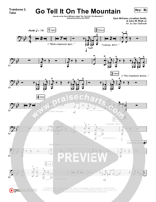 Go Tell It On The Mountain Trombone/Tuba Sheet Music PDF (Zach Williams)