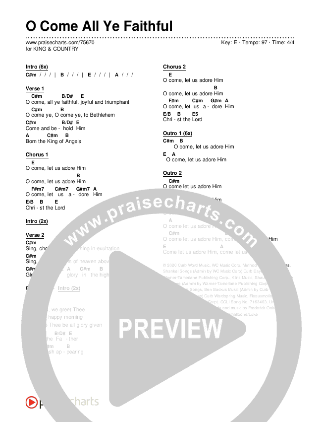 O Come All Ye Faithful Chords PDF (for KING & COUNTRY)