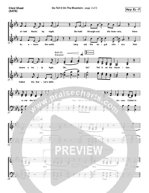 Download the Choir Sheet for Go Tell It On The Mountain by for KING & COUNTRY / Gabby Barrett, from the album A Drummer Boy Christmas. This song was arranged by Erik Foster / Daniel Galbraith in the key of Eb, F.