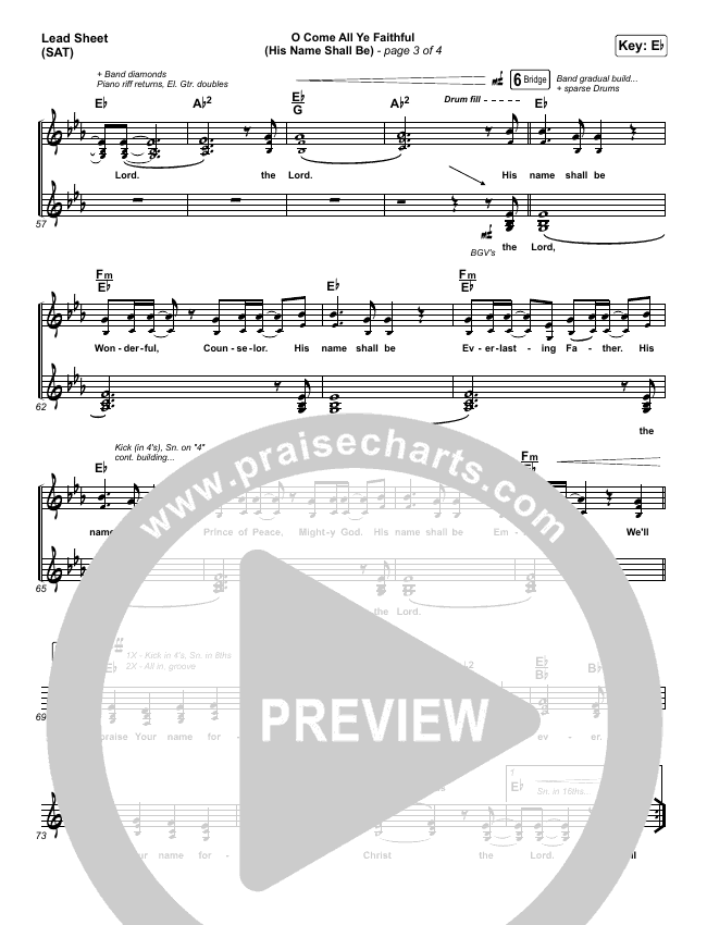 Download the sheet music for O Come All Ye Faithful (His Name Shall Be) by Passion / Melodie Malone, from the album Hope Has A Name. This song was arranged by Grant Wall / Daniel Galbraith in the key of C, D, E, Eb.