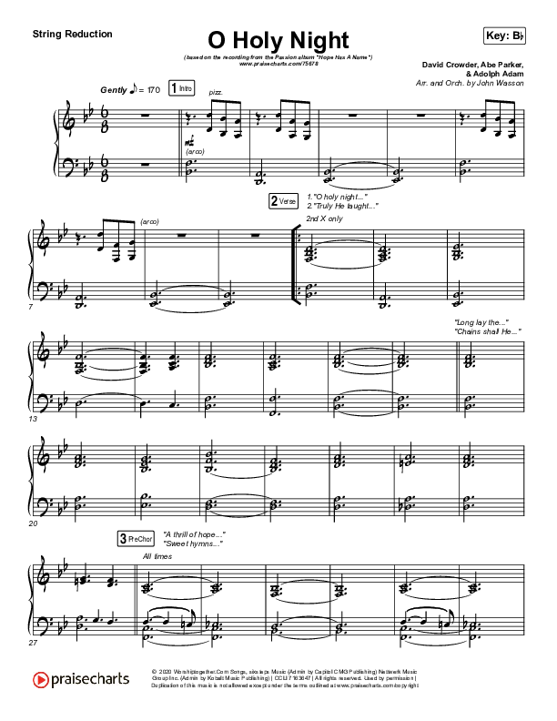 Download the Orchestration for O Holy Night by Passion / Crowder, from the album Hope Has A Name. This song was arranged by John Wasson in the key of A, Bb, G.
