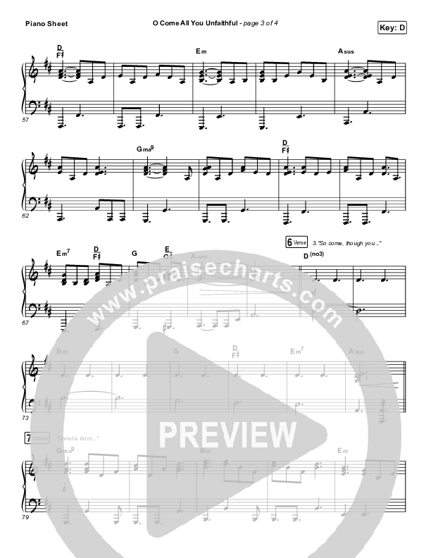 Download the piano sheet for O Come All You Unfaithful by Sovereign Grace, from the album Heaven Has Come. This song was arranged by Daniel Galbraith in the key of D, Eb.