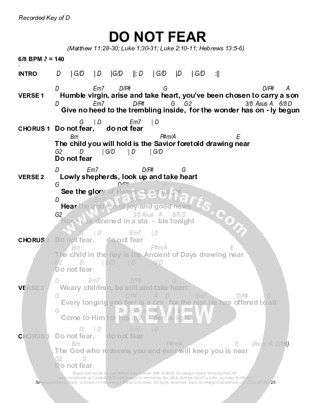 Download the PDF Chord Charts for Do Not Fear by Sovereign Grace, from the album Heaven Has Come.