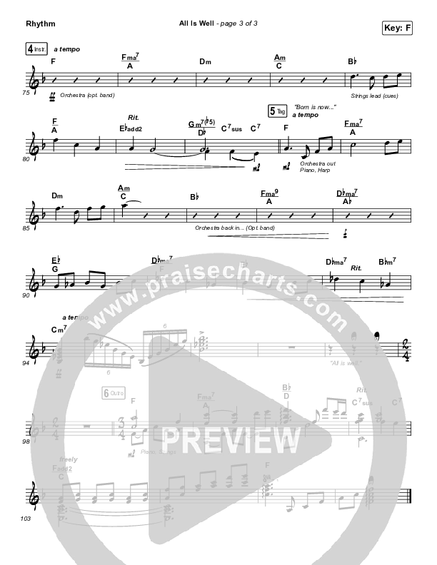Download the Rhythm Chart for All Is Well by Michael W. Smith / Carrie Underwood, from the album The Spirit Of Christmas. This song was arranged by Grant Wall / Daniel Galbraith in the key of Eb, F.