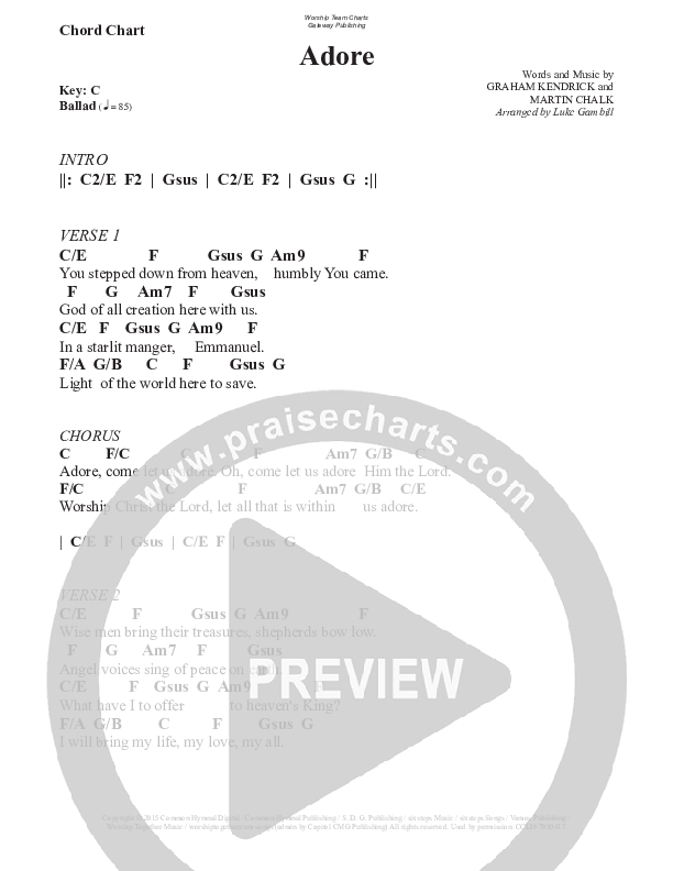 Download the PDF Chord Charts for Adore by WorshipTeam.tv, from the album WorshipTeam.tv. This song was arranged by Luke Gambill in the key of C.