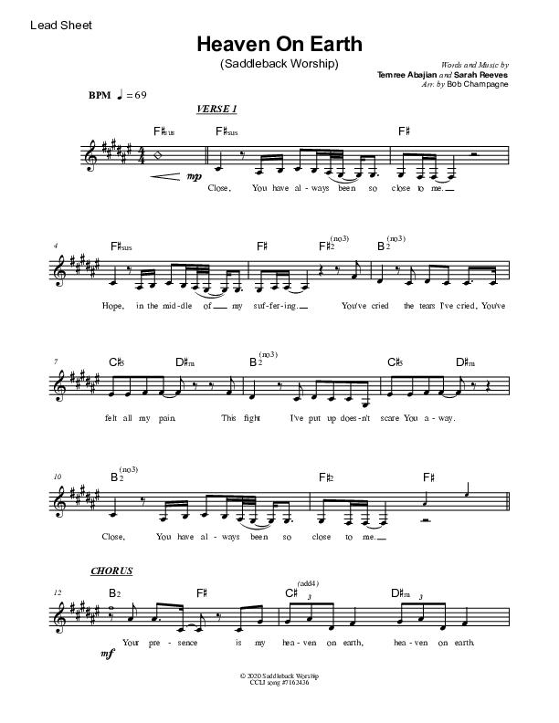 Heaven On Earth Lead Sheet (Sarah Reeves / Temree Abajian / Saddleback Worship)