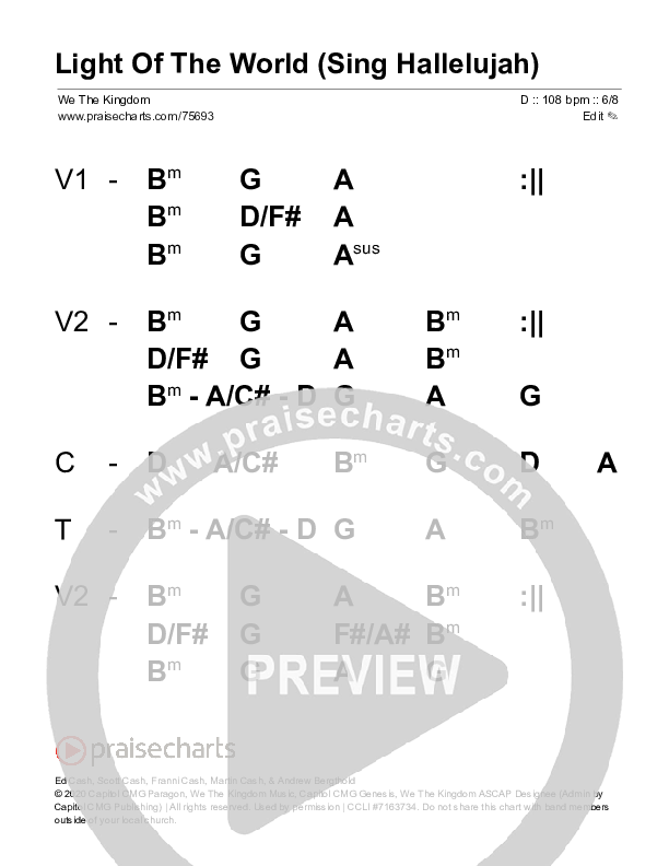 Light Of The World (Sing Hallelujah) (Choral Anthem SATB) Free Chords PDF (We The Kingdom / Arr. Luke Gambill)