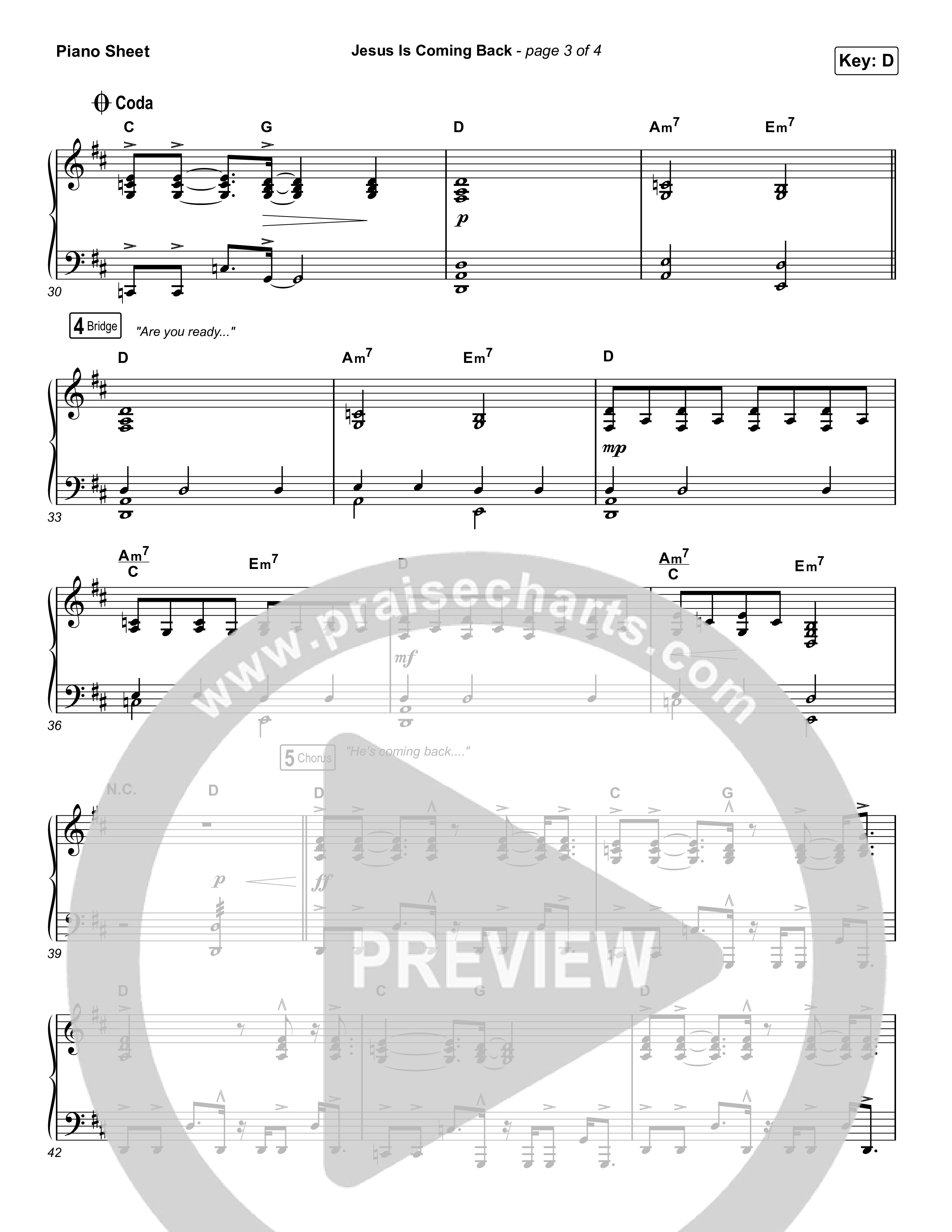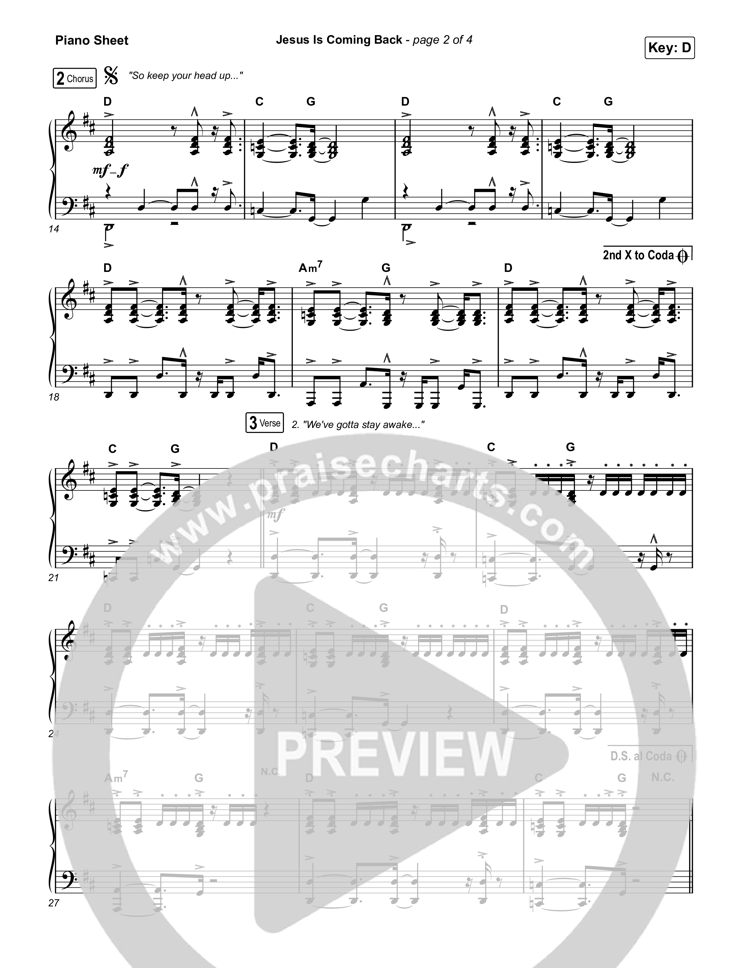 Download the piano sheet for Jesus Is Coming Back by Jordan Feliz, from the album Say It. This song was arranged by Grant Wall in the key of D.
