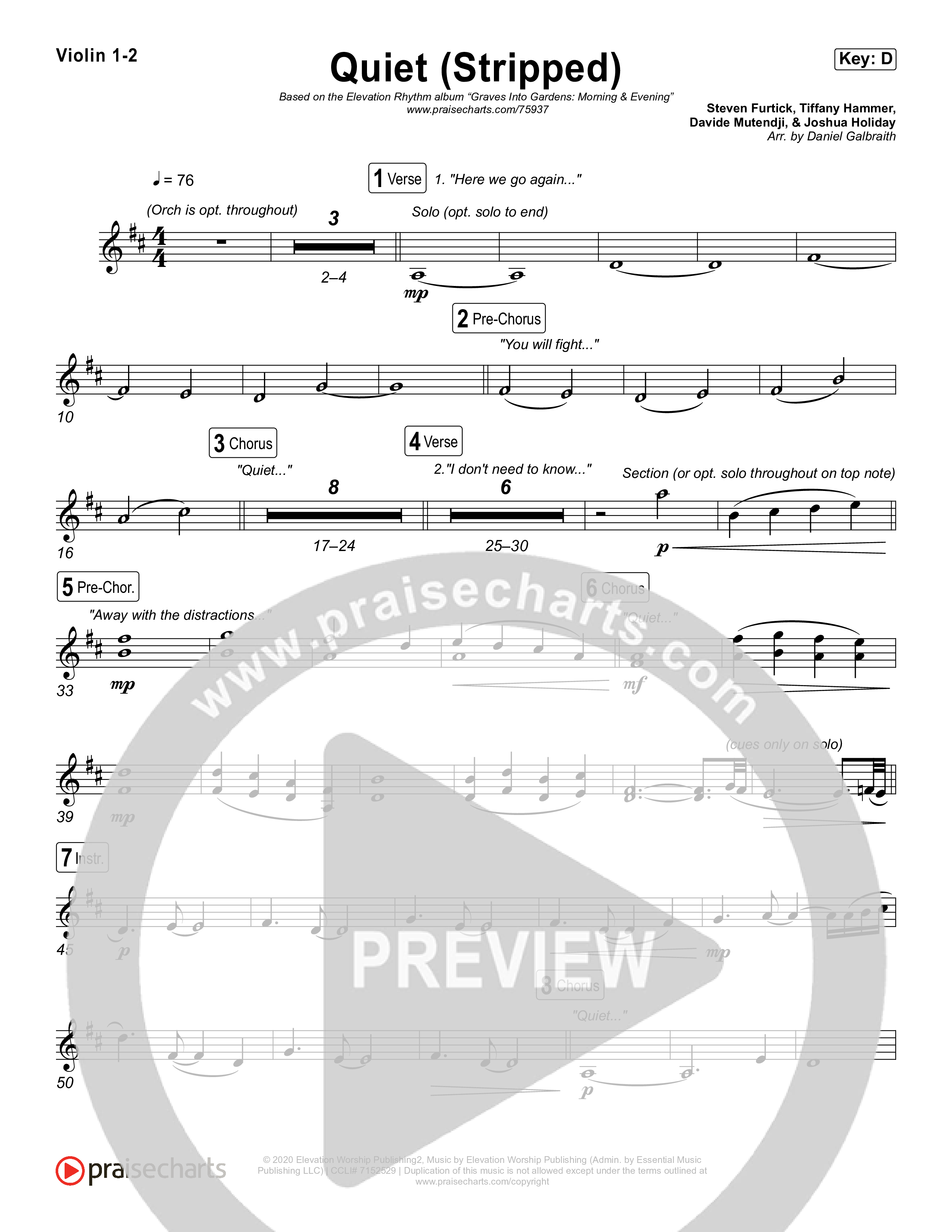 Download the Orchestration string parts for Quiet (Stripped) by Elevation Worship / ELEVATION RHYTHM, from the album Graves Into Gardens: Morning & Evening. This song was arranged by Daniel Galbraith in the key of D, Eb.