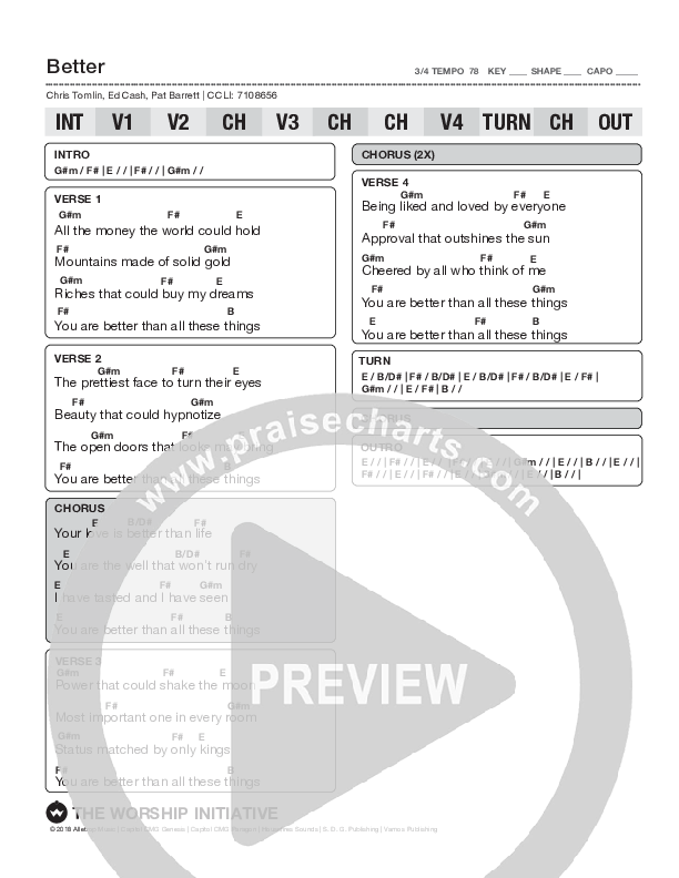 Download the PDF Chord Charts for Better (Live) by Shane & Shane/The Worship Initiative, from the album The Worship Initiative Volume 23.