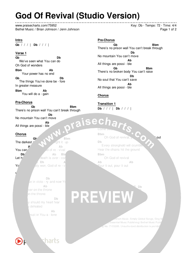 Download the PDF Chord Charts for God Of Revival (Studio) by Bethel Music / Brian Johnson / Jenn Johnson, from the album God Of Revival (Studio Version).