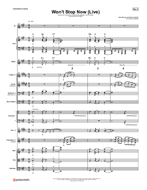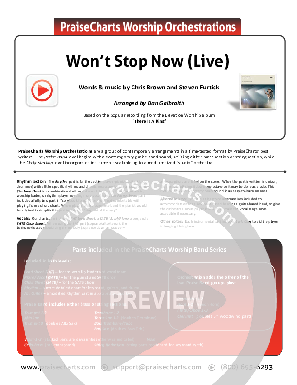 Download the Orchestration for Won't Stop Now (Live) by Elevation Worship / Brandon Lake, from the album Won't Stop Now. This song was arranged by Daniel Galbraith in the key of A, Bb.