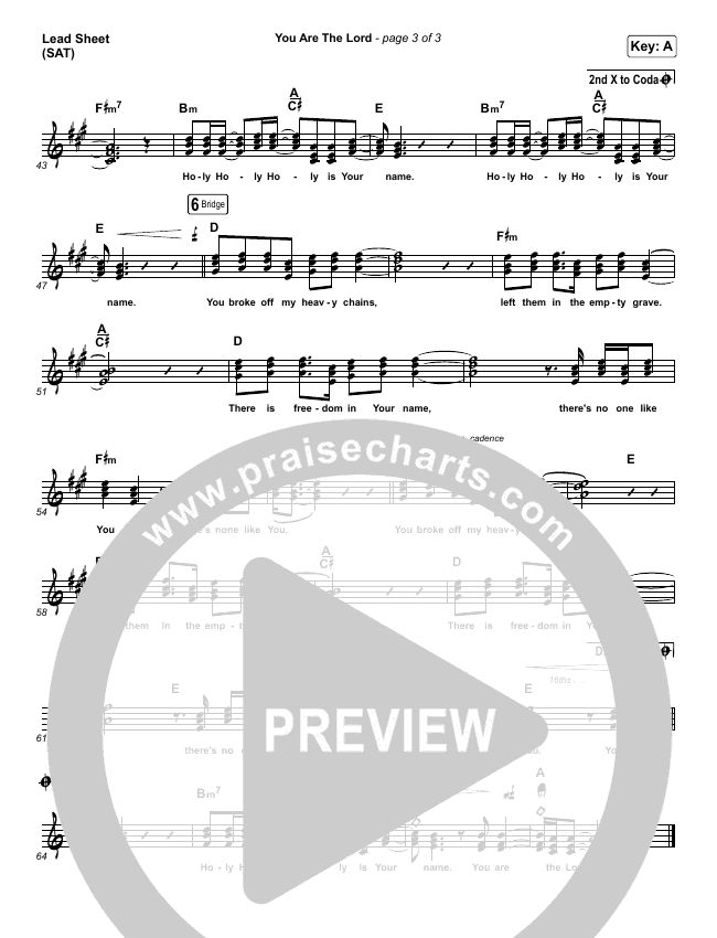 Download the sheet music for You Are The Lord by Passion / Brett Younker / Naomi Raine, from the album Breakthrough Miracle Power / You Are The Lord. This song was arranged by Daniel Galbraith in the key of A, Ab.