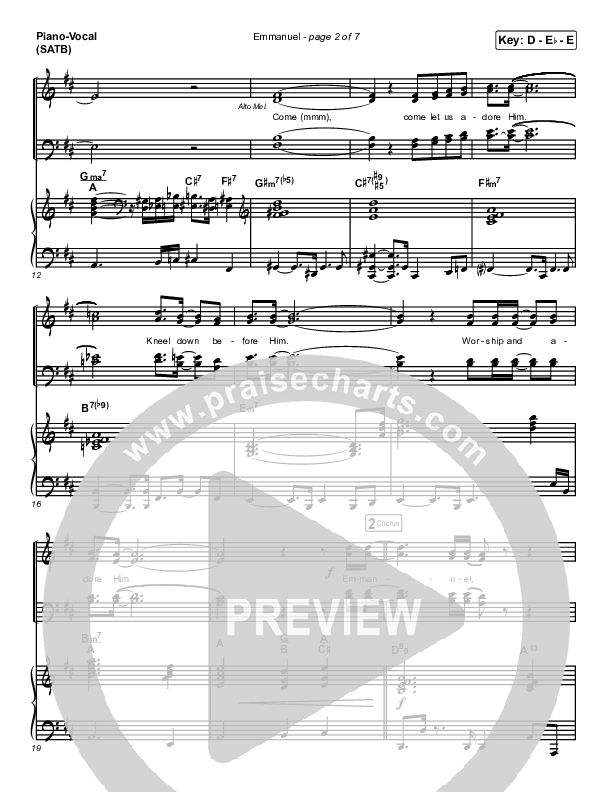 Download the sheet music for Emmanuel by Norman Hutchins, from the album Emmanuel: Norman Hutchins & JDI Christmas. This song was arranged by Dustin Loehrs / Daniel Galbraith in the key of D, Db.