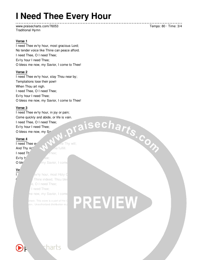 I Need Thee Every Hour Chords PDF (Traditional Hymn)