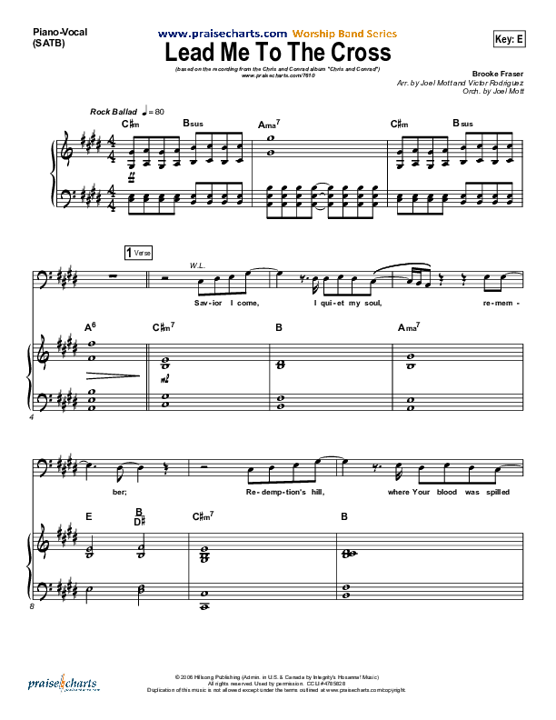 Download the sheet music for Lead Me To The Cross by Chris And Conrad, from the album Chris And Conrad. This song was arranged by Joel Mott / Victor Rodriguez in the key of E, Gb.