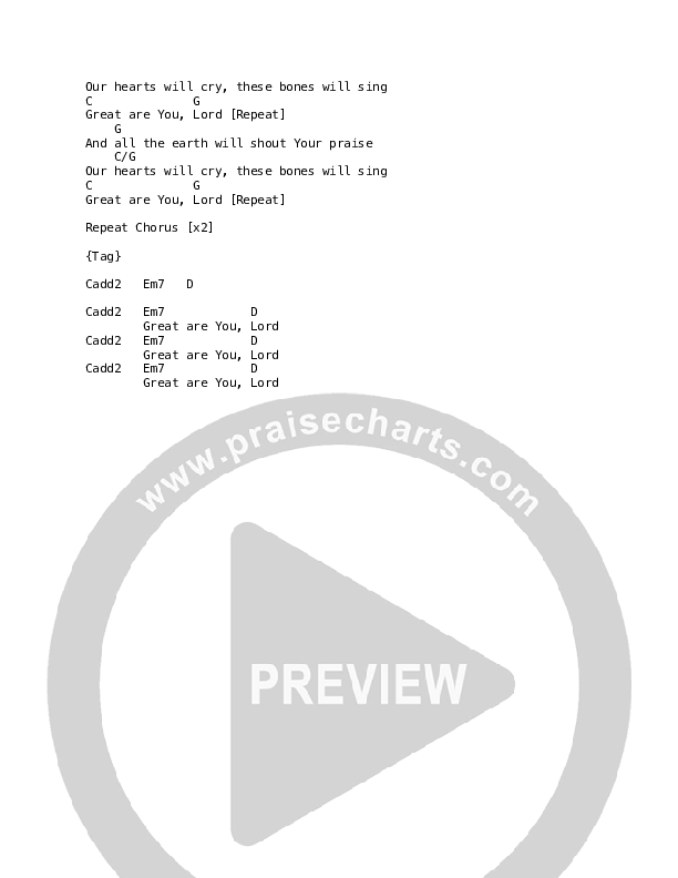 Great Are You Lord Chord Chart (REVERE / Mark Barlow / MDSN)