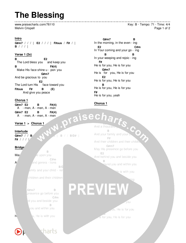 Download the PDF Chord Charts for The Blessing by Melvin Crispell, from the album The Blessing - Single.