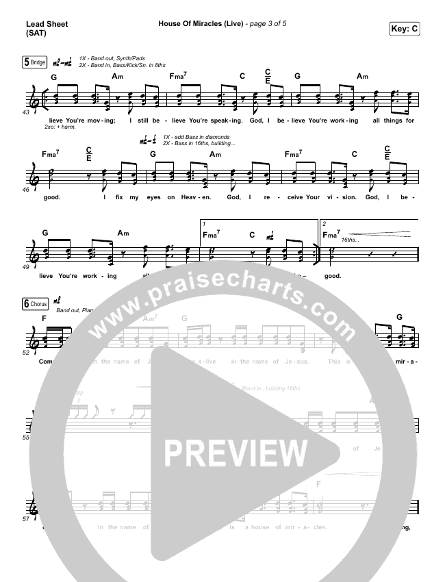 Download the sheet music for House Of Miracles (Live) by Brandon Lake, from the album House Of Miracles (Live). This song was arranged by Daniel Galbraith in the key of Bb, C.