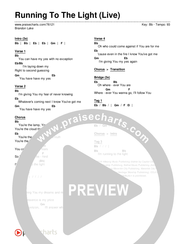 Running To The Light (Live) Chords PDF (Brandon Lake)