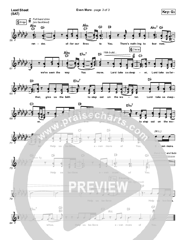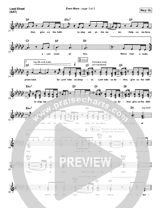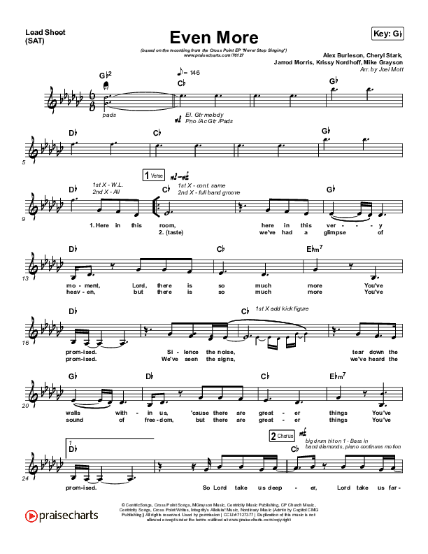 Download the sheet music for Even More by Cross Point Music / Cheryl Stark, from the album Never Stop Singing. This song was arranged by Joel Mott in the key of G, Gb.
