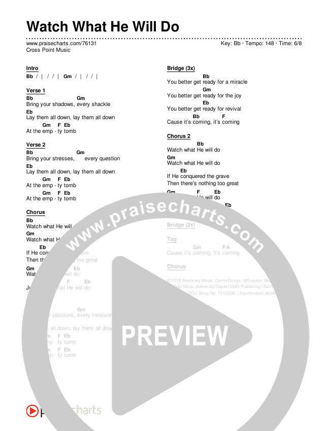 Download the PDF Chord Charts for Watch What He Will Do by Cross Point Music, from the album Cross Point Music.
