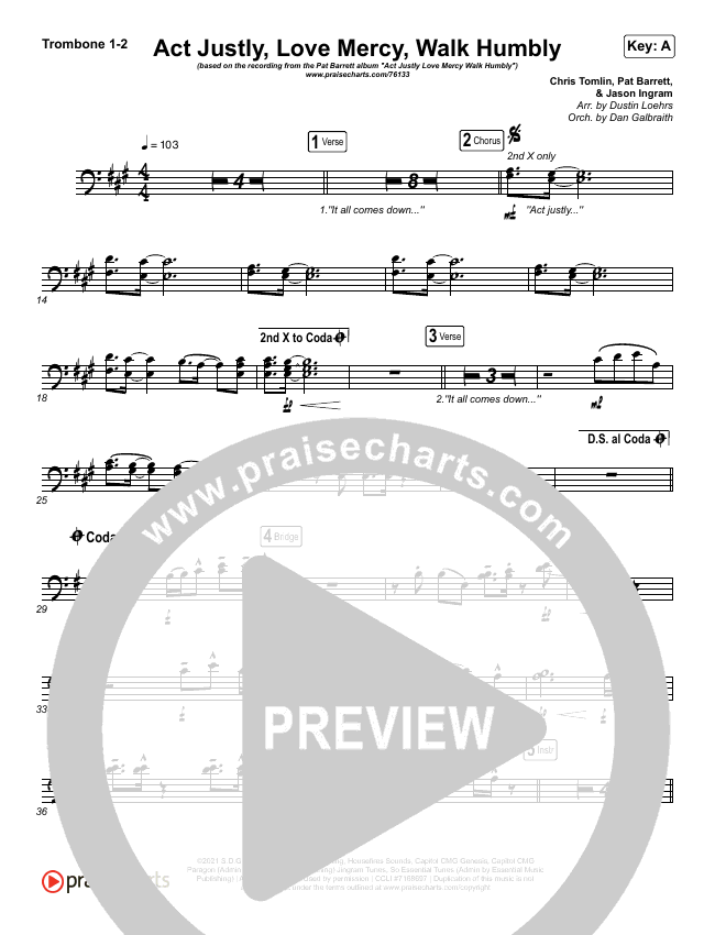 Download the Orchestration brass parts for Act Justly Love Mercy Walk Humbly by Pat Barrett, from the album Act Justly Love Mercy Walk Humbly. This song was arranged by Dustin Loehrs / Daniel Galbraith in the key of A, Ab.