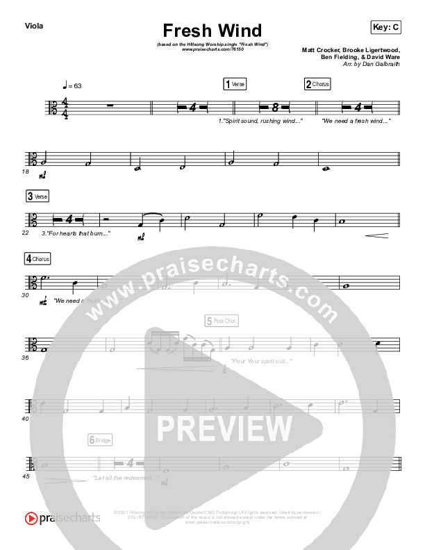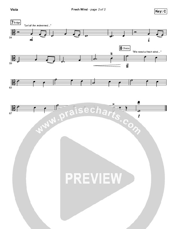 Download the Viola sheet music for Fresh Wind by Hillsong Worship, from the album Fresh Wind - Single. This song was arranged by Daniel Galbraith in the key of C, D.