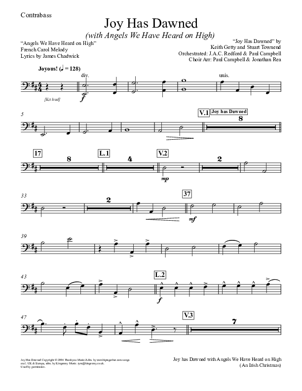 Download the Orchestration for Joy Has Dawned (with Angels We Have Heard On High) by Keith & Kristyn Getty, from the album Joy An Irish Christmas. This song was arranged by JAC Redford / Paul Campbell in the key of D.