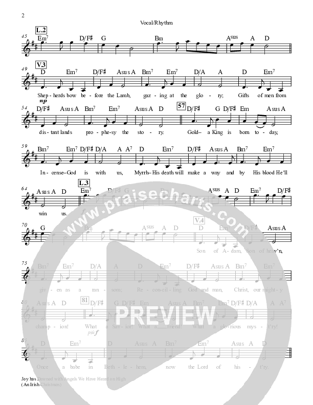 Find top Christmas worship songs being sung in churches across Ireland during the Advent season. Download chord charts, vocal sheets, orchestrations, patches, and multitracks.