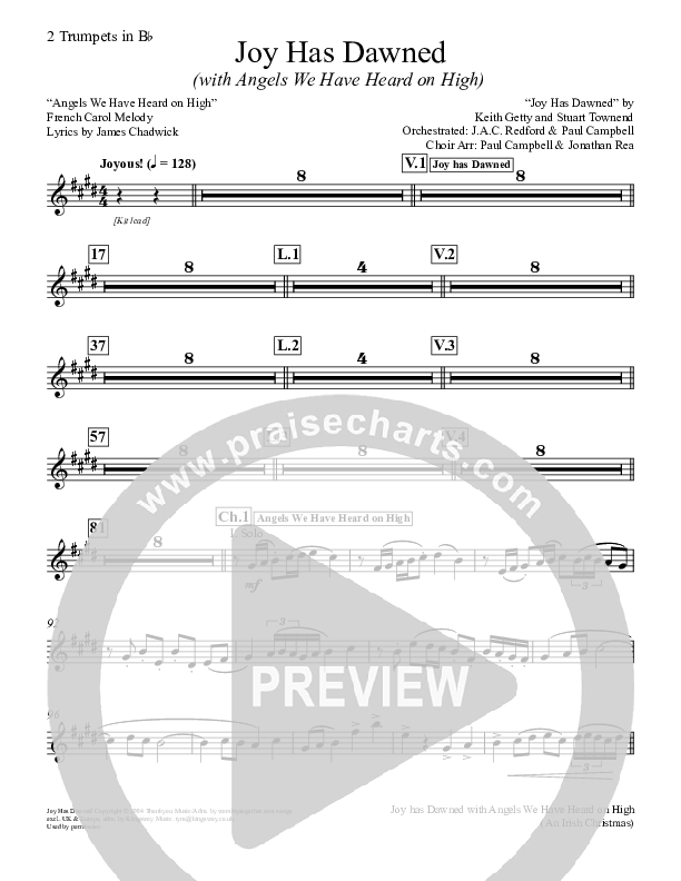Joy Has Dawned (with Angels We Have Heard On High) Trumpet Sheet Music PDF (Keith & Kristyn Getty)