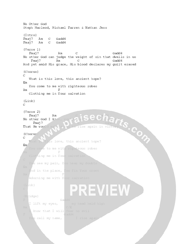 Download the PDF Chord Charts for No Other God by Steph Macleod, from the album No Other God - Single.