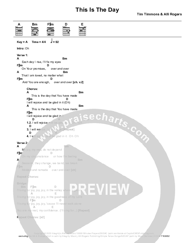Download the PDF Chord Charts for This Is The Day by Tim Timmons, from the album Here.