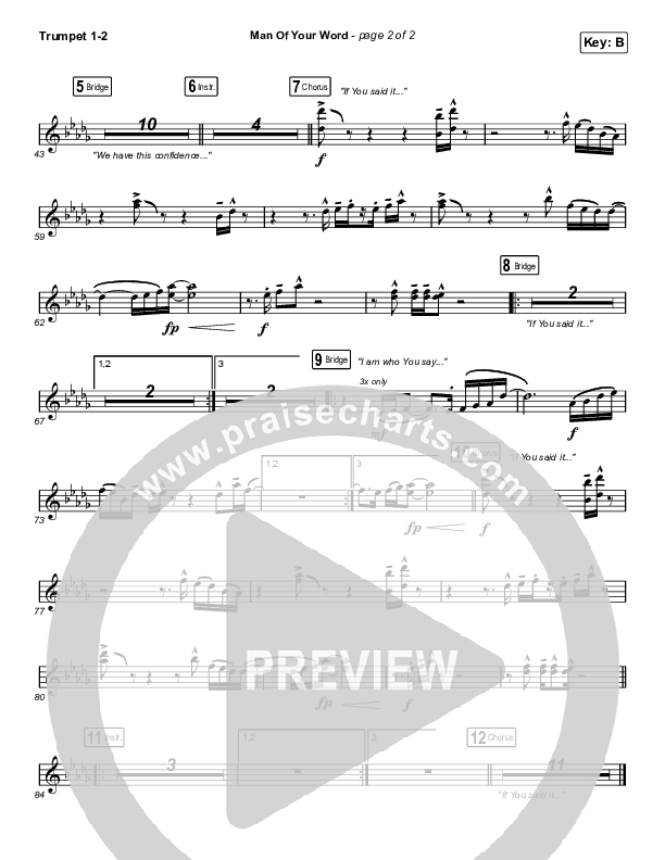 Download the trumpet sheet music for Man Of Your Word by Maverick City Music, from the album Maverick City Vol 3 Part 1. This song was arranged by Erik Foster / Daniel Galbraith in the key of B, C.