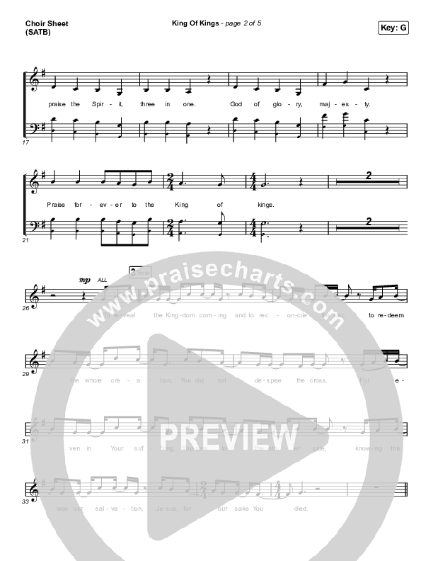 Download the Choir Sheet for King Of Kings by Chandler Moore, from the album King Of Kings. This song was arranged by Dustin Loehrs in the key of G, Gb.