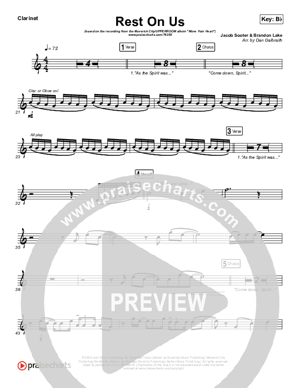 Download the Clarinet sheet music for Rest On Us by Maverick City Music / UPPERROOM / Brandon Lake / Eniola Abioye, from the album Move Your Heart EP. This song was arranged by Daniel Galbraith in the key of Bb, C.
