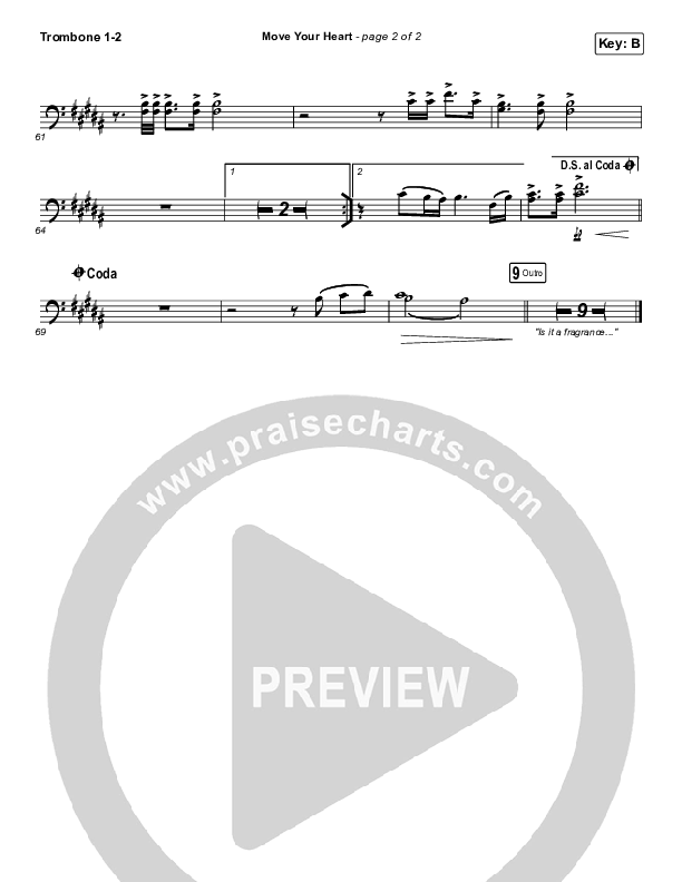 Download the Trombone 1,2 sheet music for Move Your Heart by Maverick City Music / UPPERROOM / Dante Bowe / Elyssa Smith, from the album Move Your Heart EP. This song was arranged by Erik Foster / Daniel Galbraith in the key of B, C.