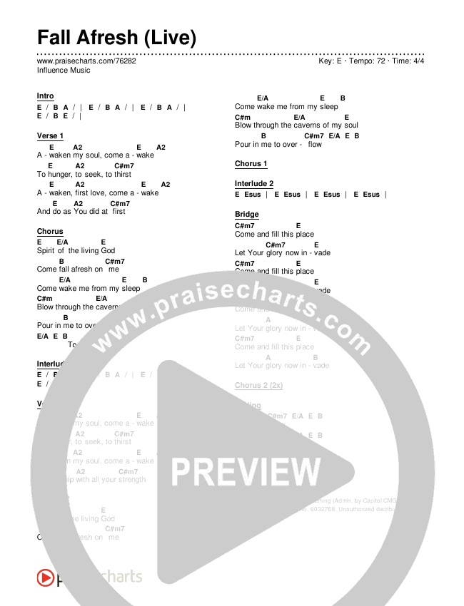 Fall Afresh (Live) Chords PDF (Influence Music)