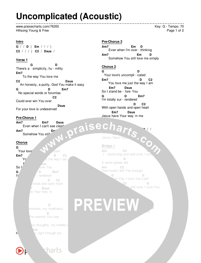 Uncomplicated (Acoustic) Chords PDF (Hillsong Young & Free)