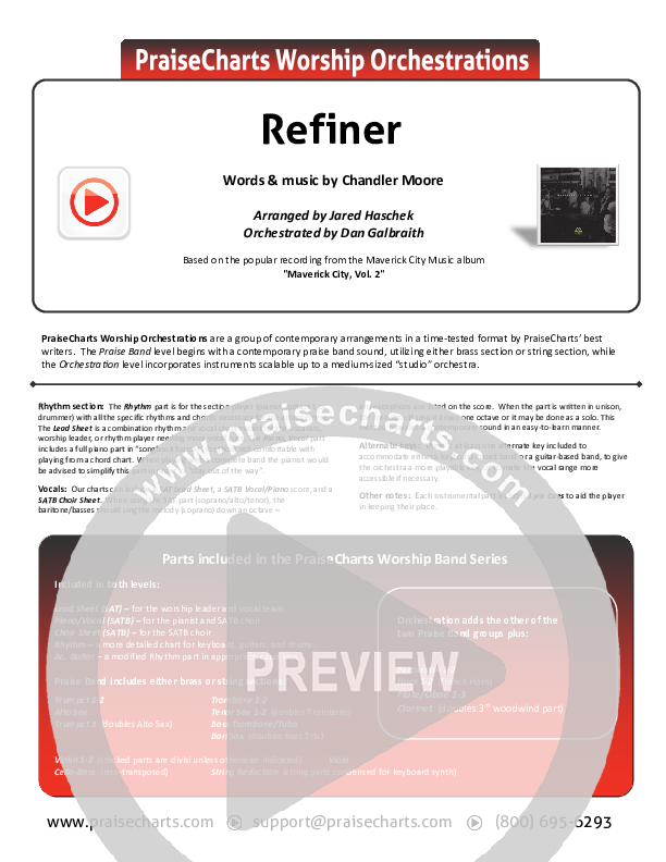 Download the Orchestration for Refiner by Maverick City Music / Steffany Gretzinger, from the album Maverick City Vol. 2. This song was arranged by Jared Haschek / Daniel Galbraith in the key of E, F.