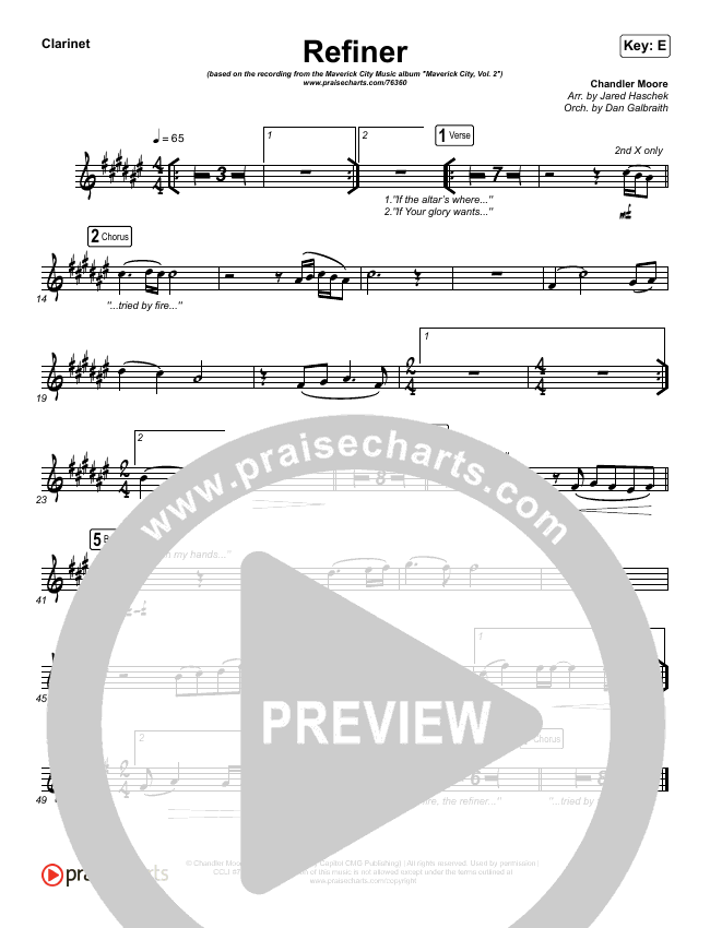 Download the Orchestration wind parts for Refiner by Maverick City Music / Steffany Gretzinger, from the album Maverick City Vol. 2. This song was arranged by Jared Haschek / Daniel Galbraith in the key of E, F.