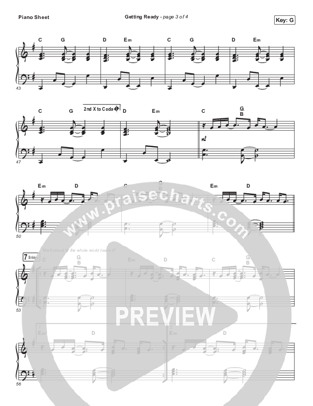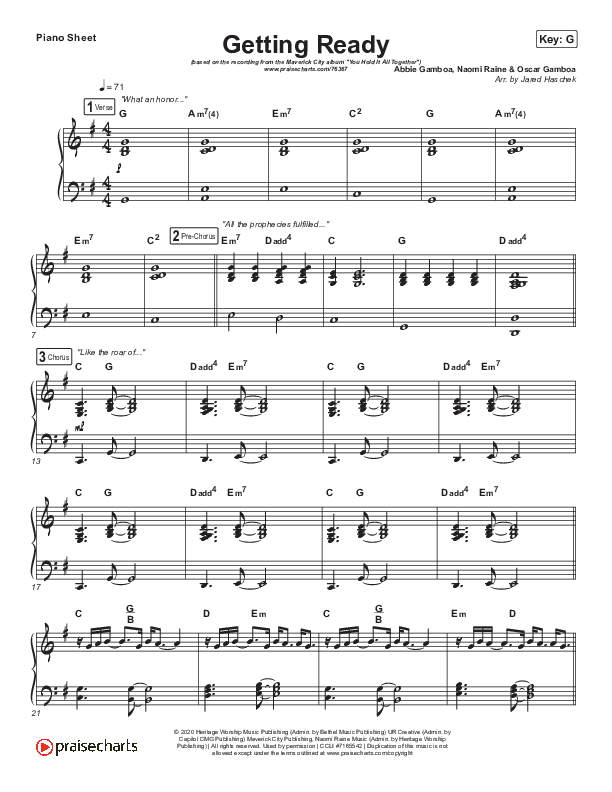 Download the piano sheet for Getting Ready by Maverick City Music / UPPERROOM / Abbie Gamboa / Naomi Raine / Joel Figueroa, from the album You Hold It All Together. This song was arranged by Jared Haschek in the key of Ab, G.