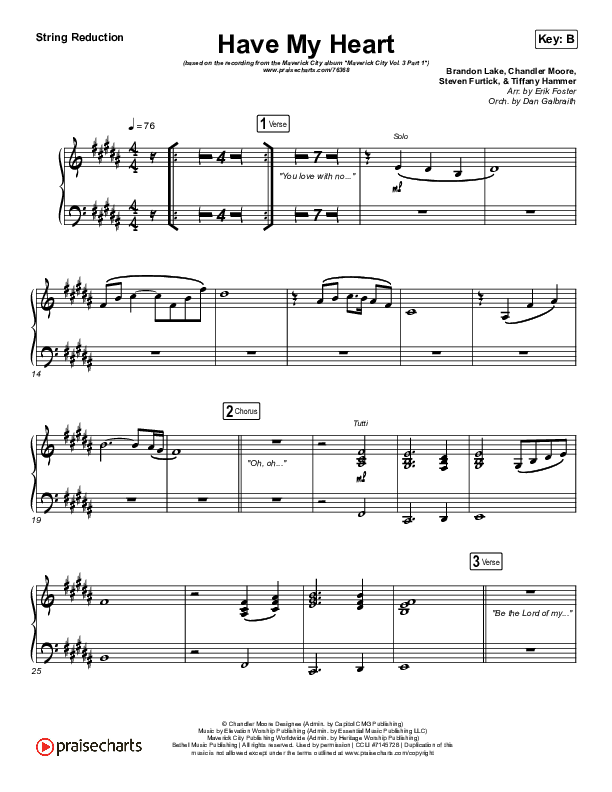 Download the Orchestration for Have My Heart by Maverick City Music / Chris Brown / Chandler Moore, from the album Maverick City Vol 3 Part 1. This song was arranged by Erik Foster / Daniel Galbraith in the key of B, Bb.